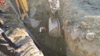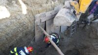 Se lucrează în continuare pentru degajarea bărbatului, în vârstă de 33 de ani. Aceasta este angajata unei societăți comerciale, care efectuează lucrări de canalizare.