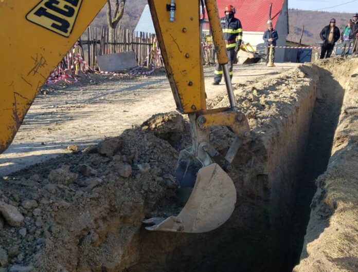 Se lucrează în continuare pentru degajarea bărbatului, în vârstă de 33 de ani. Aceasta este angajata unei societăți comerciale, care efectuează lucrări de canalizare.