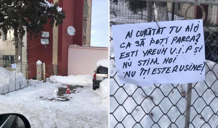 „Eu am avut mașina pe același loc unde o parchez și înainte de a veni zăpada. Am scos mașina am plecat la muncă și când am venit, toată lumea a aruncat zăpada pe acel loc..Ei, eu acu’ ce să fac, să ma apuc de spart parbrize ,cauciucuri, să le rup ștergătoarele?! Am luat lopata și mi-am făcut alt loc”, povestește Cristi Costache.