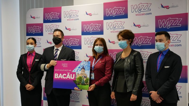 Este oficial. Compania aeriană Wizz Air și-a deschis propria bază pe Aeroportul Bacău. Anunțul a fost făcut astăzi, într-o conferință de presă, la care au participat Oana Chelaru, președintele executiv al Aeroportului Internațional „George Enescu” Bacău, Cristina Breahnă Pravăț, ca reprezentant al administrației publice locale, și Zsolt Horvath, Wizz Air base captain Bacău. Pasagerii care călătoresc din Bacău vor beneficia de tarifele reduse ale companiei și de avioanele de ultimă generație pentru o călătorie confortabilă și sigură. Deschiderea bazei din Bacău creează peste 70 de noi locuri de muncă directe în cadrul companiei aeriene și mult mai multe locuri de muncă în industriile asociate. Toate zborurile companiei sunt operate cu aeronave Airbus A320 cu 180 de locuri, A320neo cu 186 de locuri, A321 cu 230 locuri și aeronave Airbus A321neo cu 239 locuri.