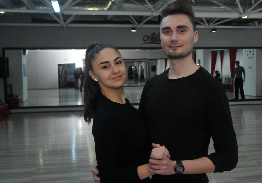 Întotdeauna este nevoie de doi pentru un dans. De aceea, despre această poezie fizică ni se destăinuie Bianca Arseni şi Marian Haidău, un cuplu de tineri dansatori sportivi de la Clubul „Adamas” din Bacău. (L.M.)