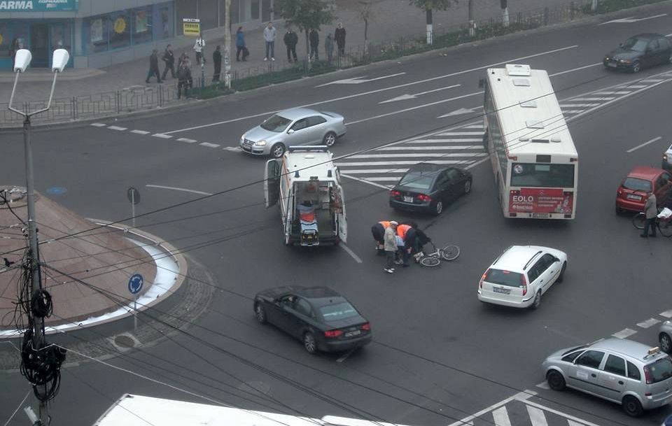 Biciclist accidentat in sensul giratoriu de la Colegiul Economic