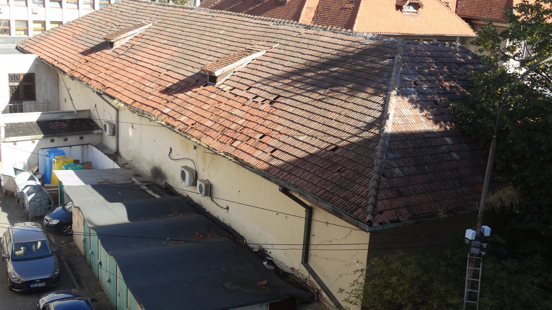 În urmă cu mai multe zile, locatorii blocului din imediata vecinătate au depus o sesizare la Primărie în care au menționat că țiglele de pe acoperișul acestei clădiri se desprind și cad în curtea blocului punând în pericol mașinile parcate dar și viața celor care circulă pe acolo. Drept urmare, imediat au venit la fața locului lucrătorii dintr-un compartiment de la Primărie și au încercat cu ajutorul unei mașini speciale cu nacelă să îndepărteze țiglele care erau pe punctul de a cădea. Nu știm cât de eficientă a fost „lucrarea” dar poate fi apreciată promptitudinea cu care s-a intervenit.