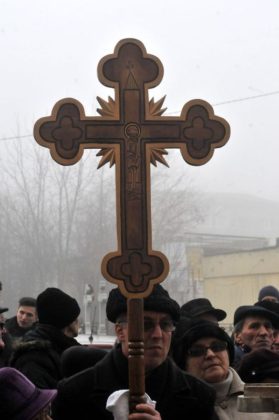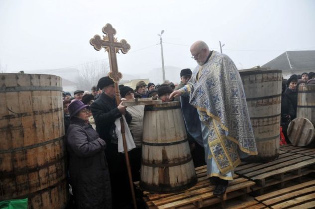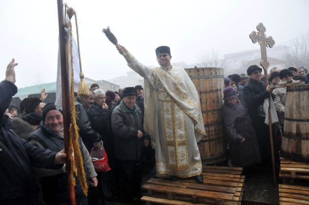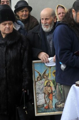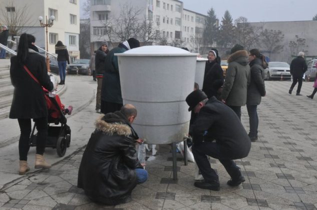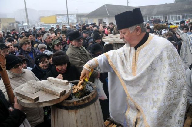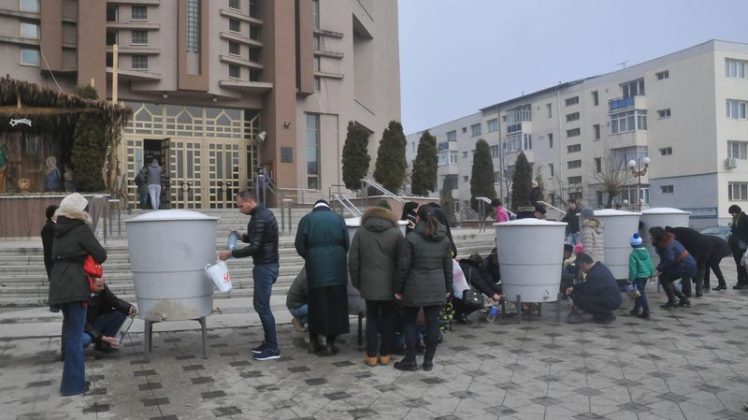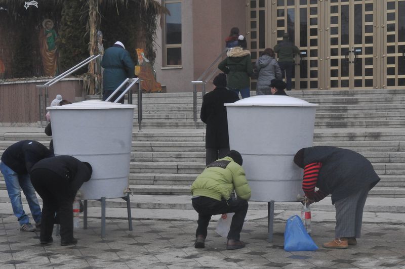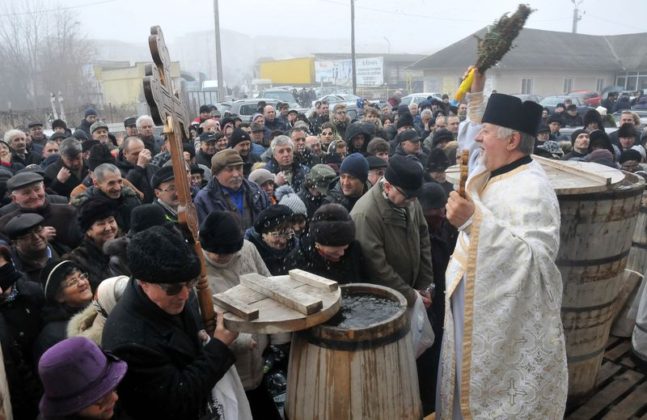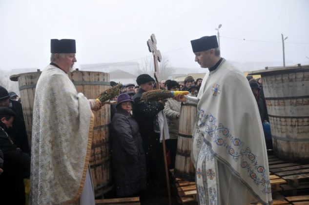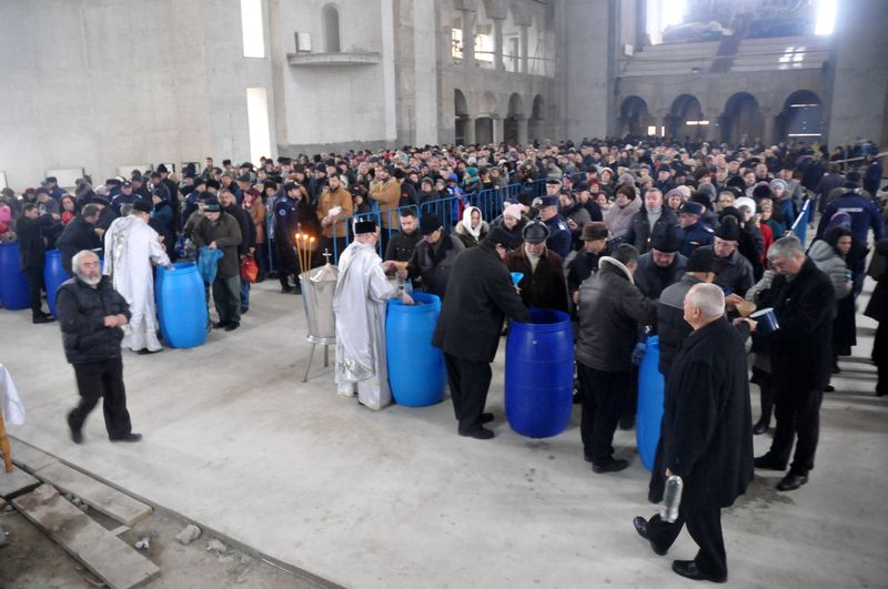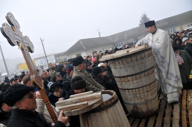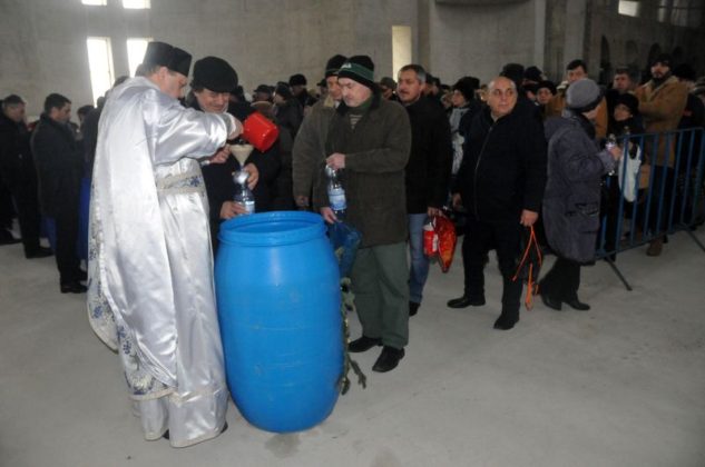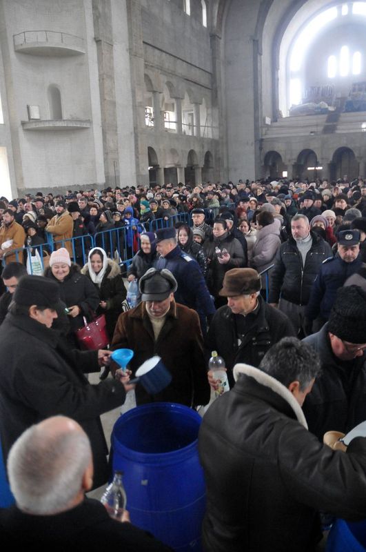 Când ultimele ecouri ale litaniei „În Iordan botezându-Te Tu Doamne …” s-au stins, mâinile purtând recipiente de tot felul s-au întins către butoaie, dornice să primească câte-o „fărâmă de Iordan”.