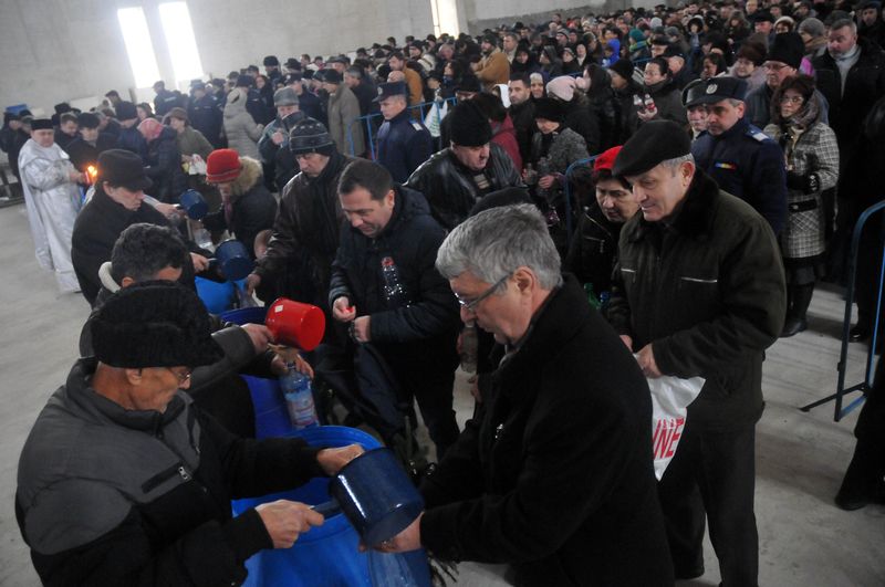 „Ce să-i faci dacă Dumnezeu a rânduit Boboteaza pe 6 ianuarie şi nu pe 23 august. Ziceţi «bodaproste» că nu a fost ca în anii trecuţi”, a precizat sfătos unul dintre voluntarii care împărţeau agheasma.