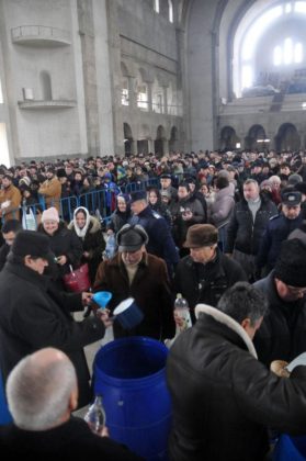 Ei au umplut curţile lăcaşelor de rugăciune, dornici să primească stropii de Agheasmă Mare ca pe un panaceu la necazurile care-i apasă.