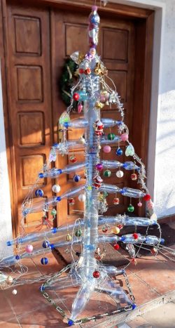 Bradul de Crăciun al inventatorului oneștean Vasile Lupu are, în acest an, o înfățișare inedită. Inventatorul, care în ultimul timp a dat bidoanelor de plastic pe care le acumulăm deseori în propria gospodărie variate utilizări, prezentate și de ziarul nostru, a construit bradul din asemenea materiale, după care l-a împodobit cum se cuvine, cu globuri, cu beteală, dar și cu nelipsita instalație de lumini. Mai mulți crăciunei miniaturali au și făcut escaladări printre ramurile bradului și au pus la loc vizibil mici cadouri pentru copii.