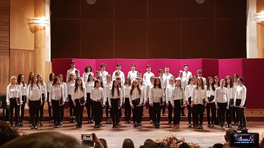 La sala Filarmonicii “Mihail Jora” din Bacău, pe 22 februarie 2019, cu începere de la orele 12.00, s-au întrecut în cântece corale cu ocazia Olimpiadei Regionale de cor, următoarele trei licee: Colegiul de Artă “George Apostu” din Bacău, Colegiul Național Catolic “Sf. Iosif” din Bacău și Colegiul Teoretic “Spiru Haret” din Moinești. Sala a fost plină cu spectatori, elevi de la cele trei licee, veniți cu toții să-și suțină colegii din cele trei ansambluri corale.