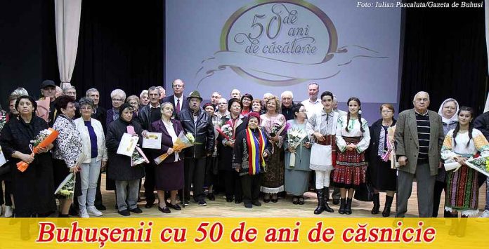 Centrul Educațional Multifuncțional din Buhuși a găzduit o festivitate emoționantă: 23 de familii din oraș au fost celebrate pentru împlinirea a 50 de ani de căsnicie. Evenimentul, organizat și finanțat de Primăria Buhuși cu sprijinul Consiliului Local, a adus împreună cupluri septuagenare și octogenare care au trecut printr-o jumătate de secol de viață împreună.