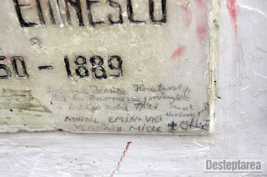 Pe placa de jos a bustului altcineva a scris cu creionul „Doamne Isuse Hristoase, fiul lui Dumnezeu, miluieste si iarta pe robul tau Mihail Eminovici si Veronica Micle”. Semneaza un anume Nicu.