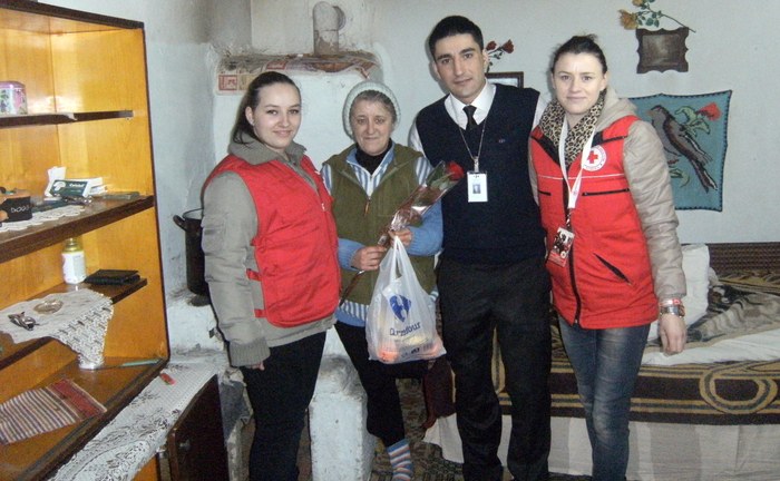 Astfel, însoțiți de voluntarii și angajații Crucii Roșii Bacău, au mers sâmbătă la aproximativ 20 de bătrâne cu flori și pachete cu alimente, fructe, ciocolată și altele.