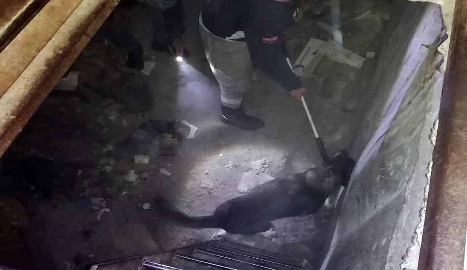 Nu se știe cum a ajuns patrupedul în subsol. Fiind speriat, câinele era agresiv, încercările locatarilor de a-l salva fiind sortite eșecului. A fost imobilizat de echipa municipalitătii și scos la suprafață.