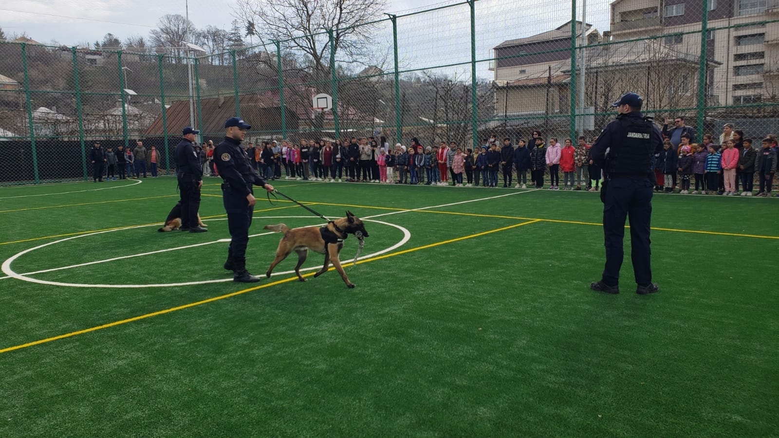 În această dimineață, jandarmii băcăuani au fost prezenți în mijlocul elevilor de la Scoala Gimnazială „Mihail Andrei” din Buhuși, unde au desfășurat activități cu caracter preventiv-educativ alături de partenerii lor necuvântători, câinii de serviciu. Chiar dacă nu au grade militare, camarazii noștri patrupezi sunt militari destoinci, reușind să facă peste 100 de elevi să zâmbească.