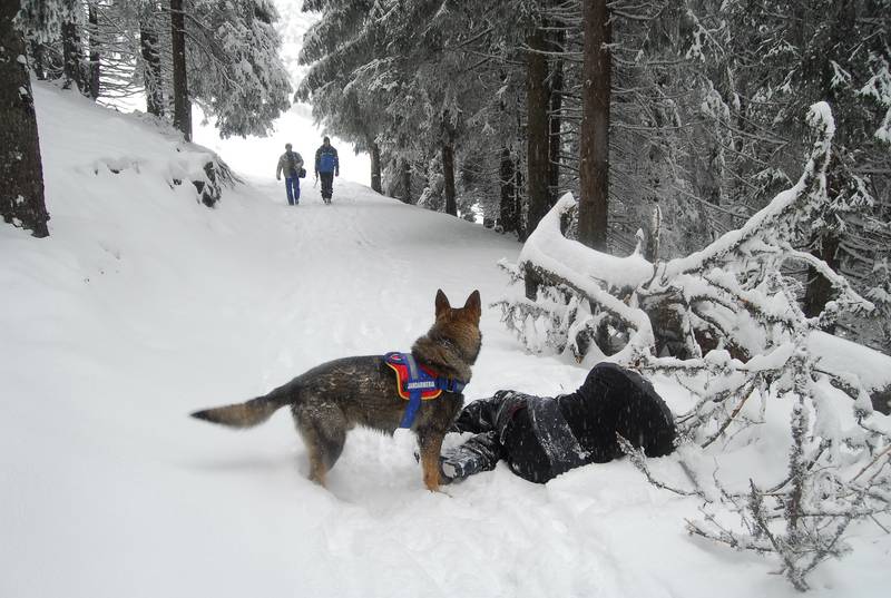 Animalele selecționate pentru domeniul montan urmează Cursul de inițiere a câinilor în specialitatea căutare-salvare în mediul natural.