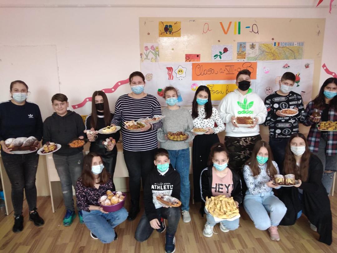 În mod ingenios, elevii clasei a VII-a B au expus preparatele lor și le-au prezentat, în final bucurându-se cu toții de bucatele alese, bunătăți, precum: gulaș cu lipie, paste chinezești, piept de pui cu curry și garnitură de orez, burak, bayldi Imam(vinete umplute cu carne tocată și diverse legume), croissante cu gem de zmeură, gogoși, cozonac, chec marmorat, sărățele, acadele americane, salep (băutură pe bază de lapte și pudră de orhidee), lokum (rahat) și ceai turcesc.