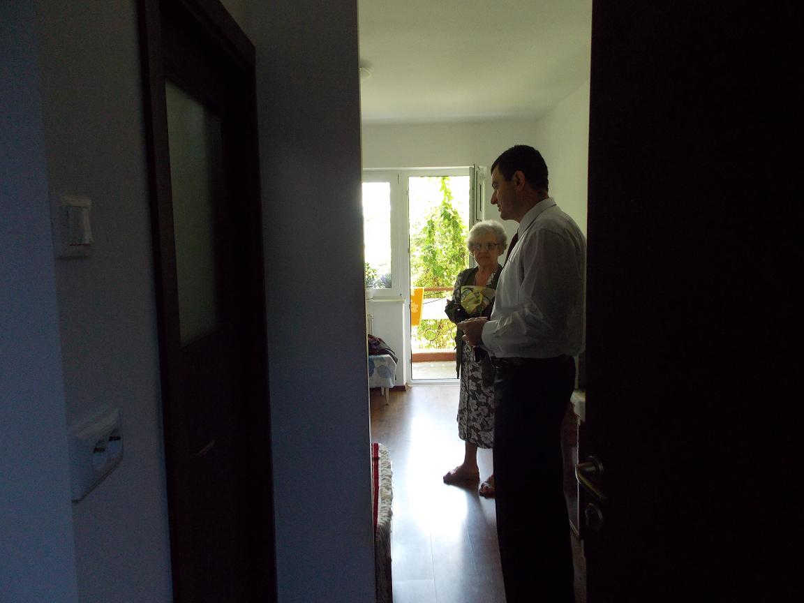 Fiecare camera este dotata cu doua paturi, baie proprie si televizor, iar pensionarii au posibilitatea sa-si amenajeze micutele garsoniere. Pe Elena Coman, asistata la Caminul de batrani, am gasit-o in camera. Surprinsa de vizita directorului si ziaristilor, femeia era vadit emotionata.