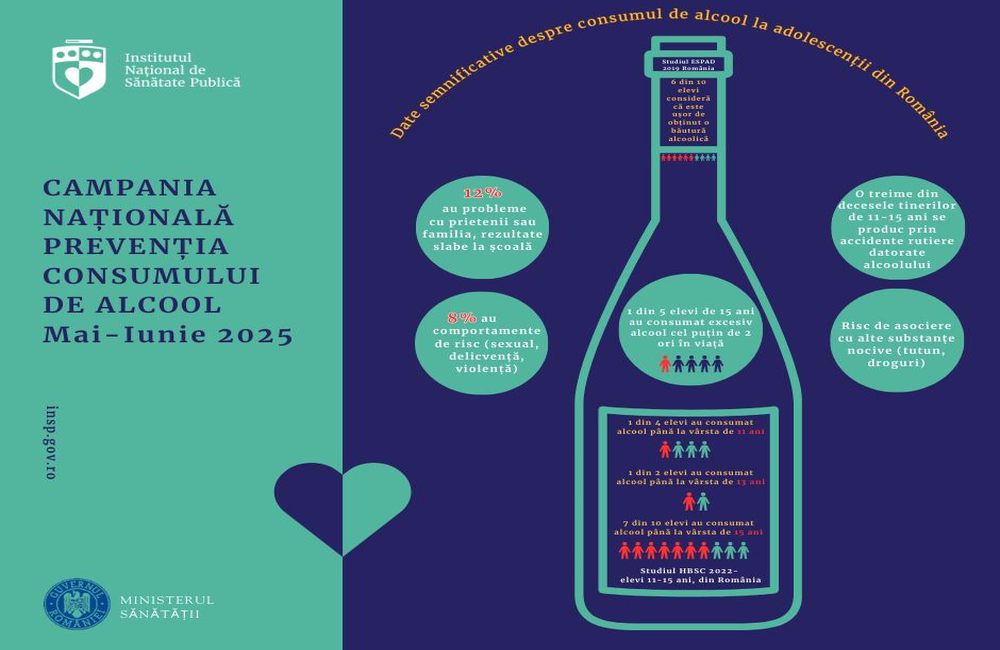 Într-o perioadă în care consumul de alcool continuă să reprezinte o provocare semnificativă pentru sănătatea publică, Campania Națională de Prevenție a Consumului de Alcool „Fii tu însuți! Nu ai nevoie de alcool!” își propune să sensibilizeze tinerii, părinții și întreaga populație asupra efectelor nocive ale alcoolului asupra sănătății fizice și mentale. Campania va avea loc pe parcursul lunilor mai și iunie 2025 și este destinată să educe și să inspire alegeri de viață sănătoase, fără consum de alcool.