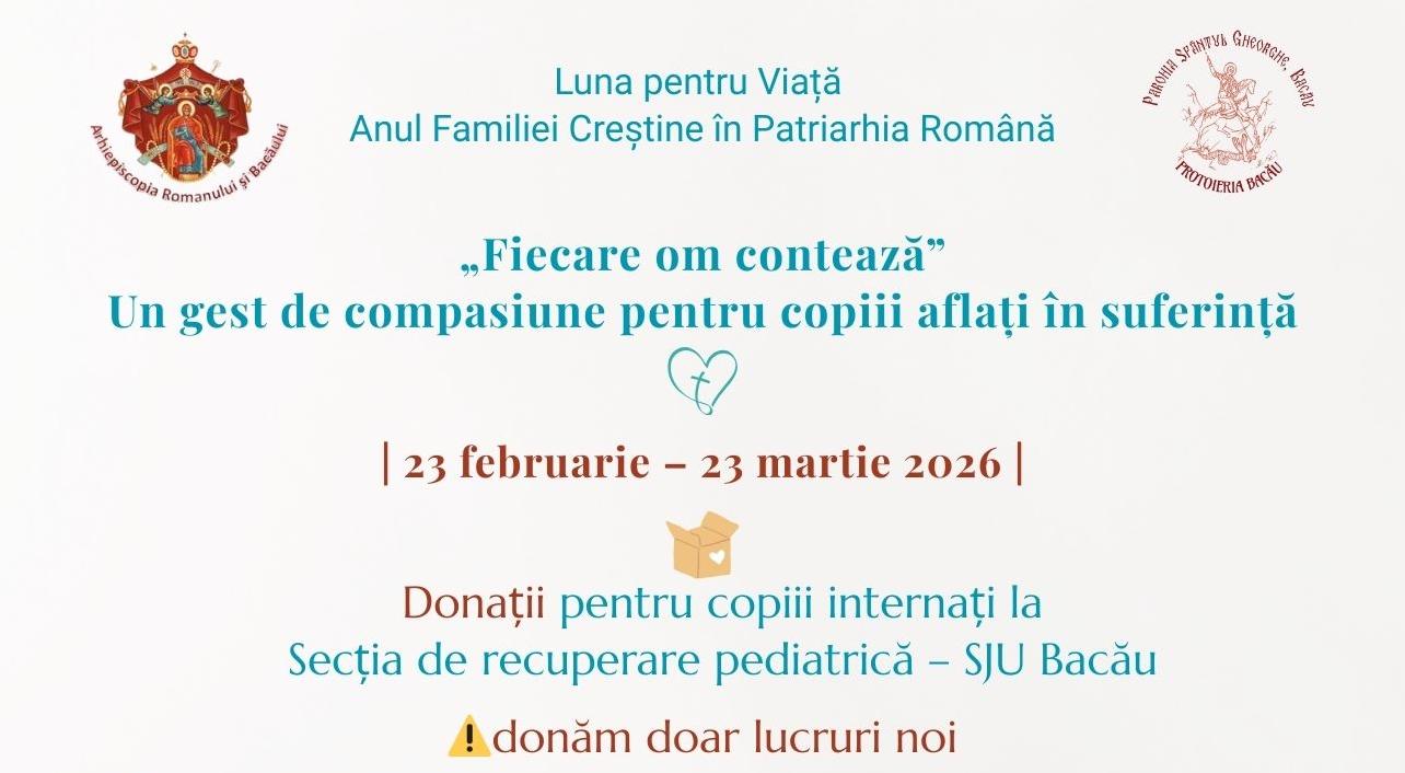 Inițiativa, desfășurată sub mesajul „Fiecare om contează”, are loc în contextul Anului pastorației familiei creștine și al manifestărilor dedicate Lunii pentru Viață (23 februarie – 23 martie 2026).