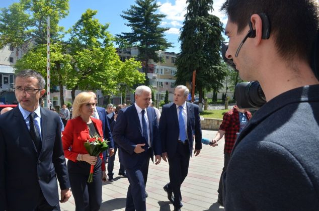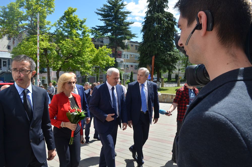Liviu Dragnea, președintele Partidului Social Democrat (PSD) și al Camerei Deputaților, și Gabriela Vrânceanu Firea, primarul Capitalei, vicepreședinte al partidului, au fost prezenți, vineri, în Moinești pentru a-l susține pe Paul Cotîrleț, candidat la funcția de primar al municipiului la scrutinul din 11 iunie.