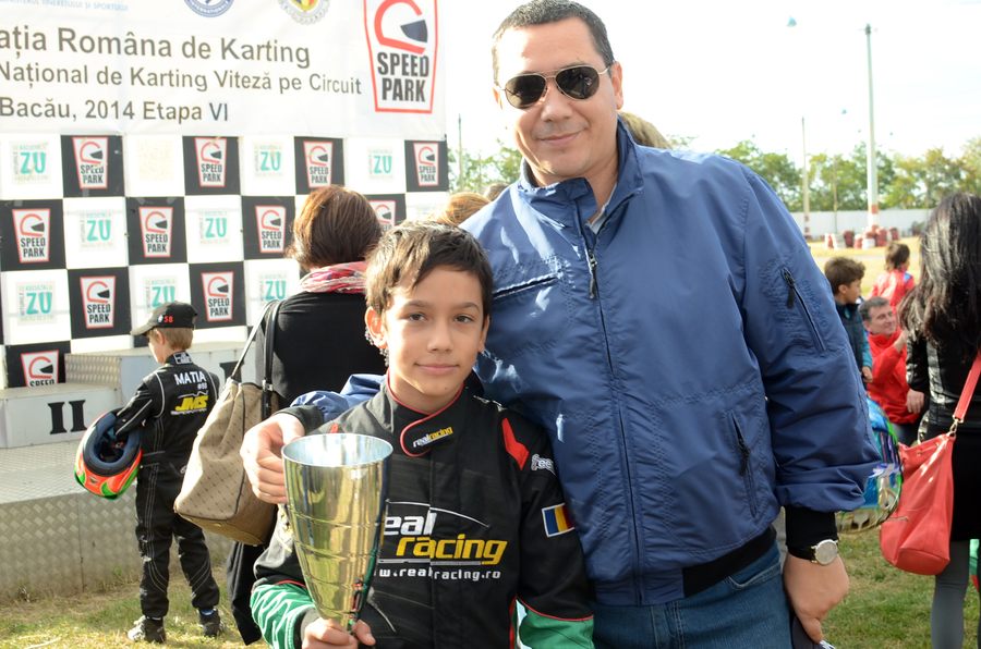 Pâna sa afle cum e sa câstigi o maxi-batalie, cea pentru functia de presedinte al tarii, Victor Ponta a vazut cum se cucereste un titlu national la Mini. Revenit sâmbata din Statele Unite ale Americii, premierul s-a aflat, ieri, in tribunele circuitului bacauan “Speed Park” pentru a tine pumnii fiului sau, Andrei Ponta la ultima etapa a Campionatului National de Karting FRK. Pe “Speed Park”, Ponta junior a transat in favoarea sa confruntarea cu Andrei Carcea, adjudecându-si cel de-al treilea titlu personal de campion al tarii. Si primul la clasa Mini.