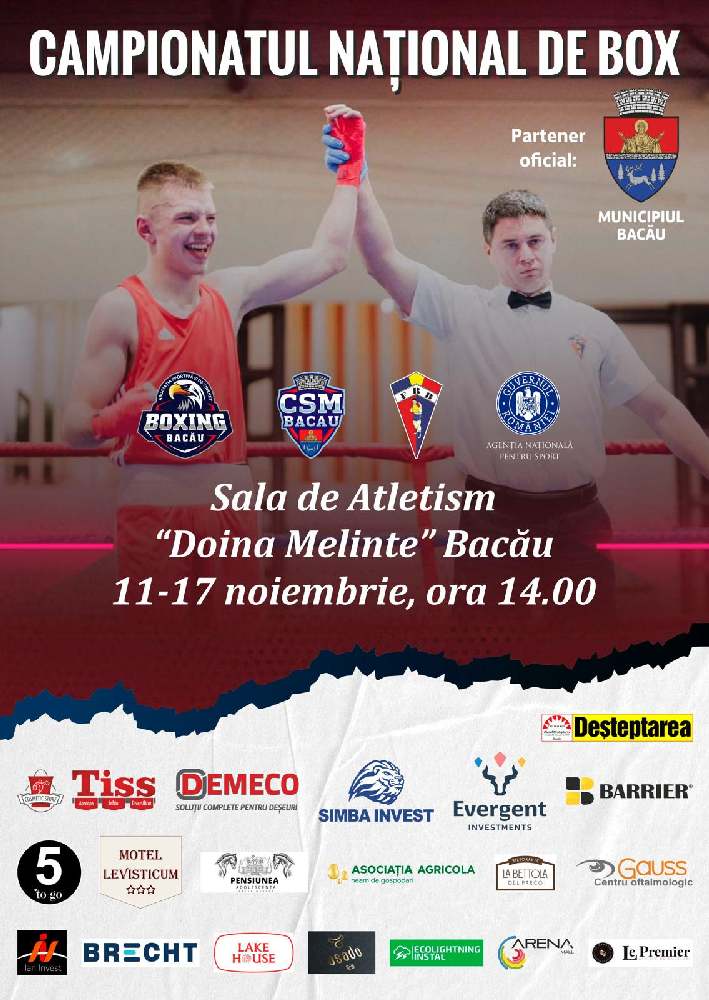 Încă de marți, 12 noiembrie, la Sala de Atletism „Doina Melinte” Bacău, a început ediția 2024 a Campionatului Național de Box pentru Tineret. Acest eveniment este organizat de CSM Bacău și Asociația Sportivă de Tineret Boxing Club Bacău, în parteneriat cu Primăria Municipiului Bacău și Federația Română de Box, iar în ringul de box urcă peste 120 de sportivi de la cele mai importante cluburi de box din țară.