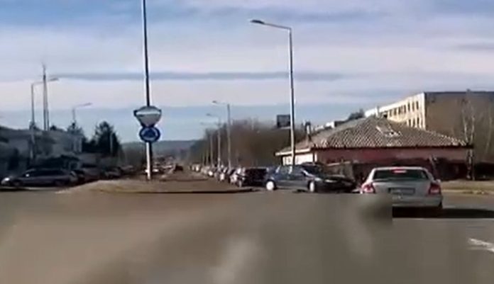 O filmare realizată cu camera de mașină arată cum un autoturism intră în sensul giratoriu de la Pasajul Ștefan Gușe, din Bacău, prin breteaua din stânga, după stilul britanic, și își continuă drumul prin intersecție ocolind giratoriul ca și cum s-ar fi aflat în Marea Britanie, unde mașinile merg pe partea stângă…
