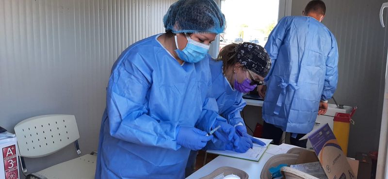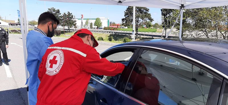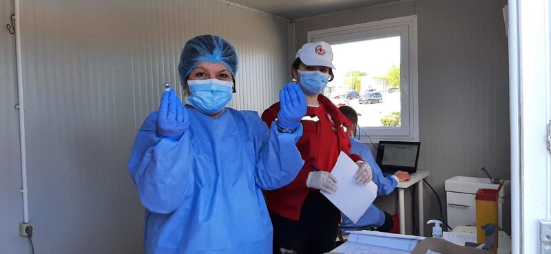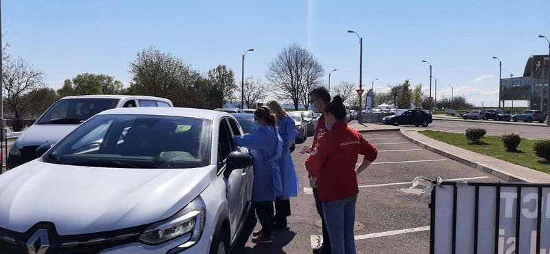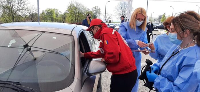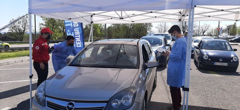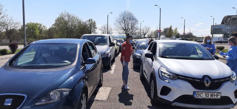 La drive-through vaccinarea este asigurată de trei medici, șase asistenți și voluntari ai Crucii Roșii Bacău.