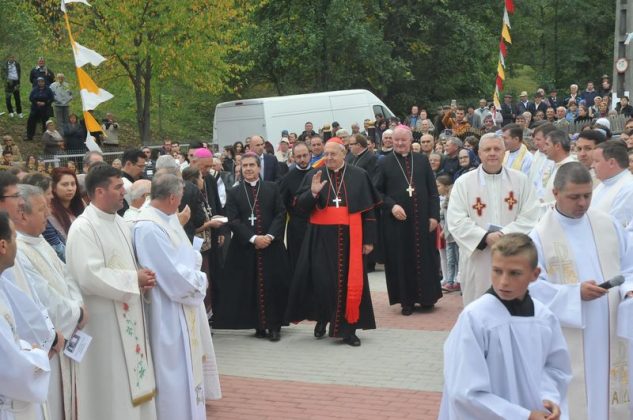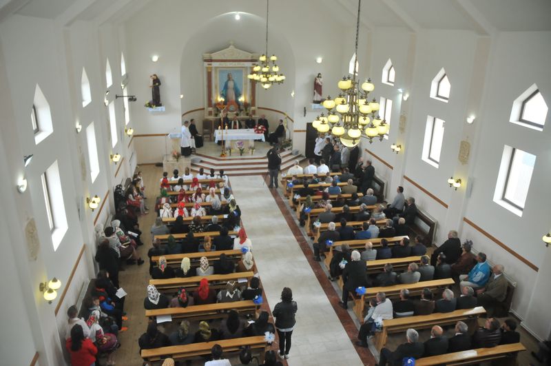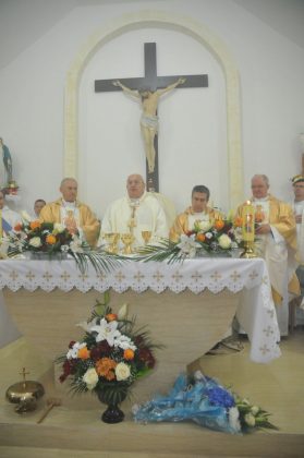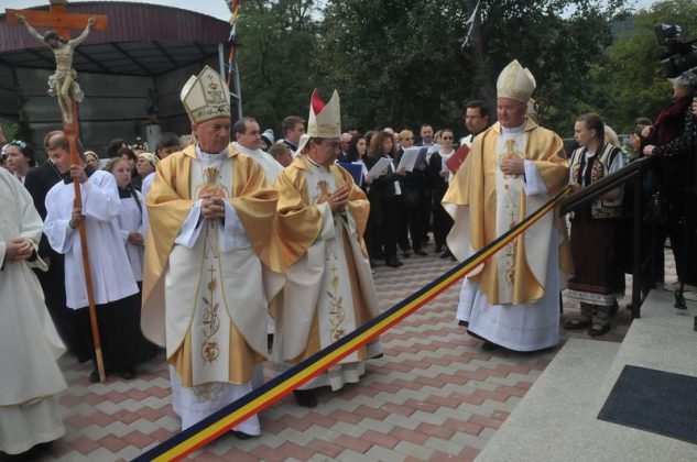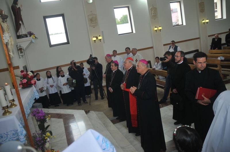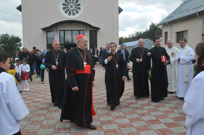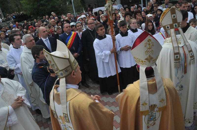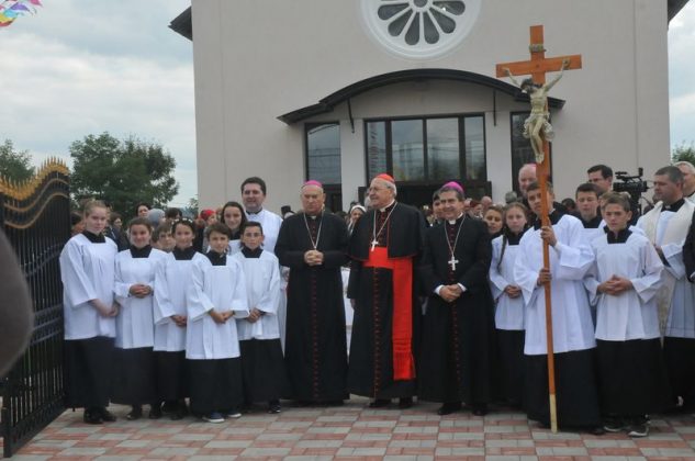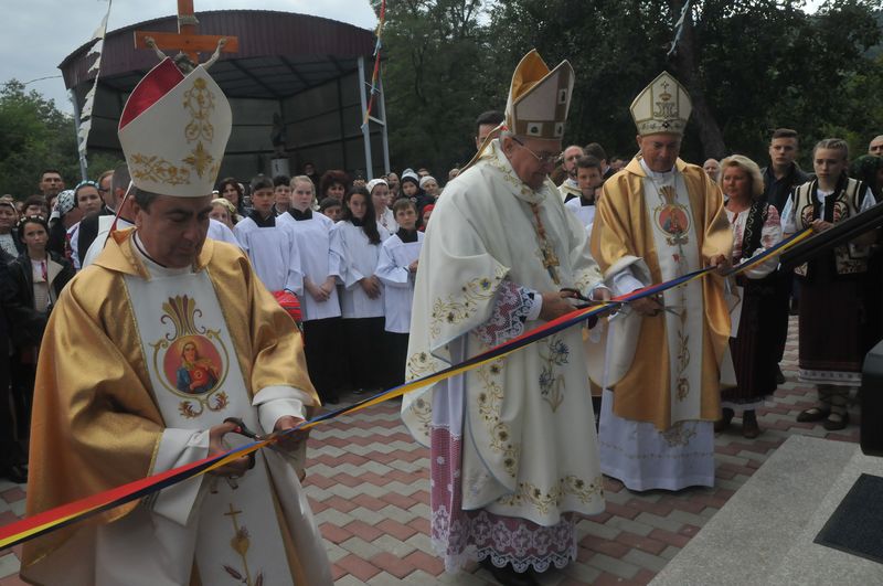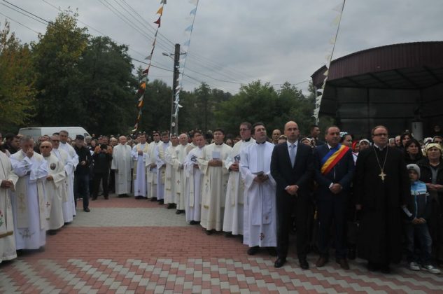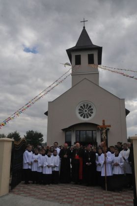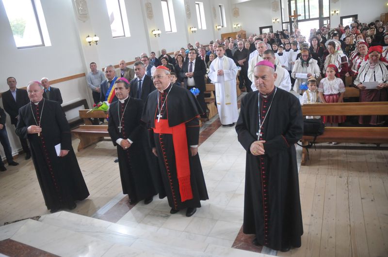 Împreună cu ei au fost prezenţi şi au participat la ceremonia de Sfinţire a bisericii şi de Consacrarea a Altarului numeroşi preoţi catolici, călugări, membri ai administraţiei locale, vicepreşedintele Consiliului Judeţean Silviu Pravăţ, preotul ortodox Irinel Cernat.