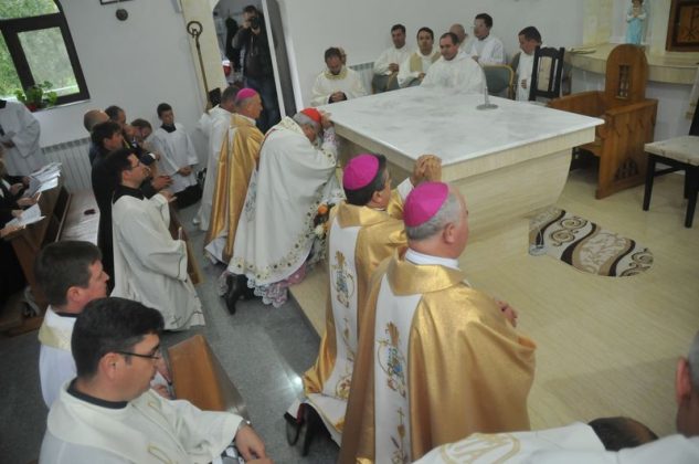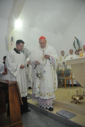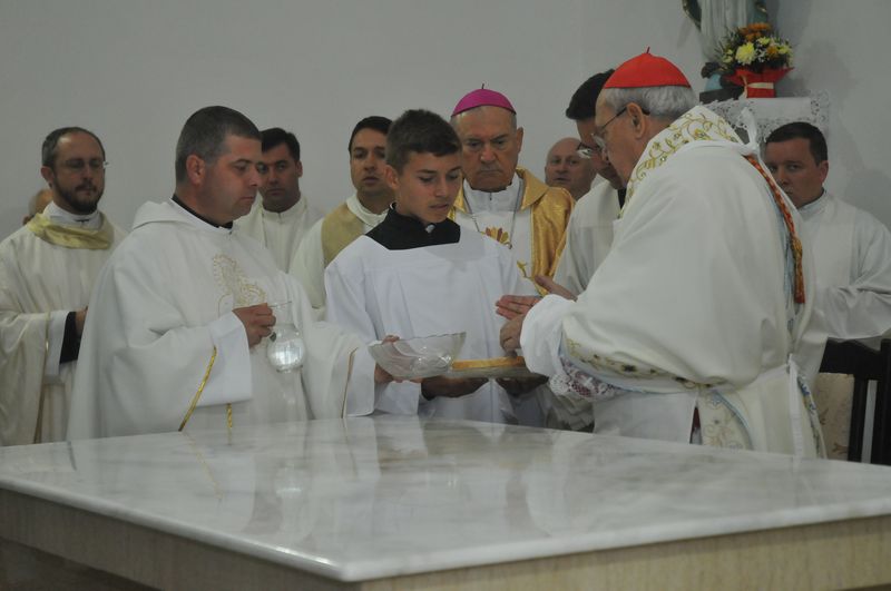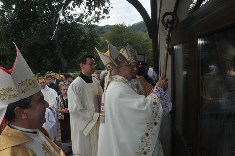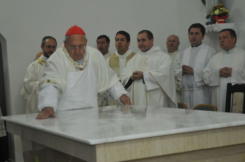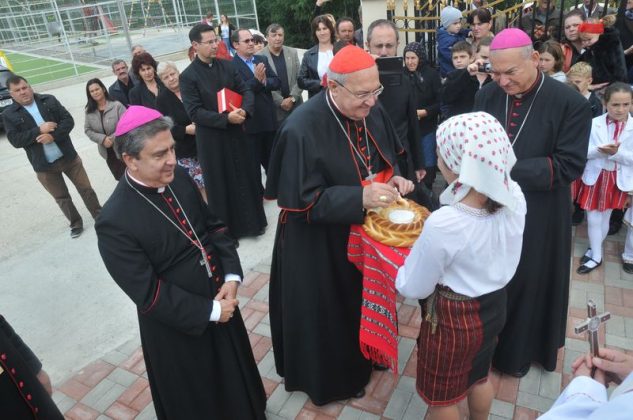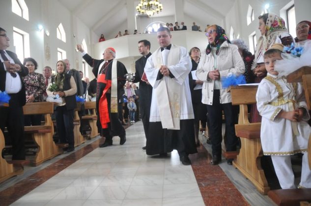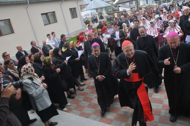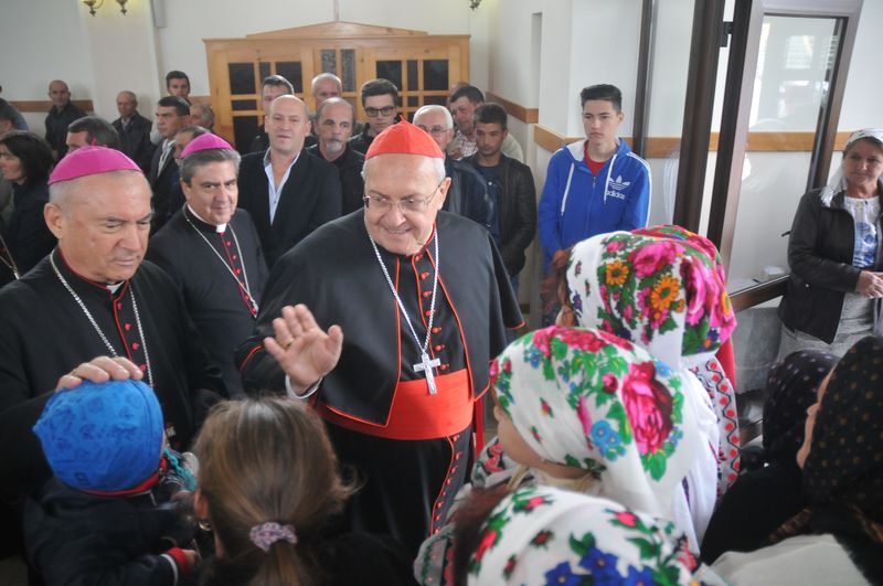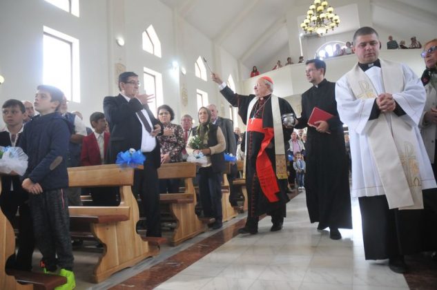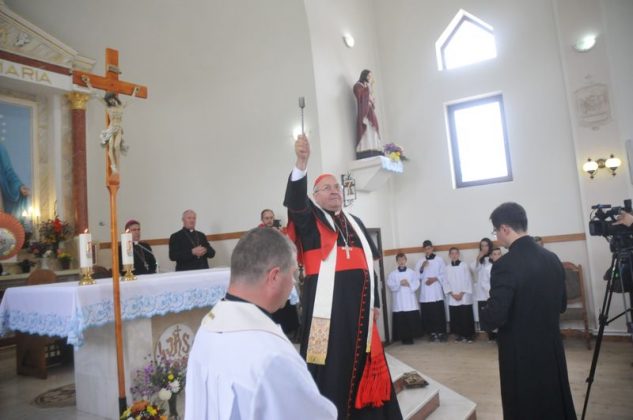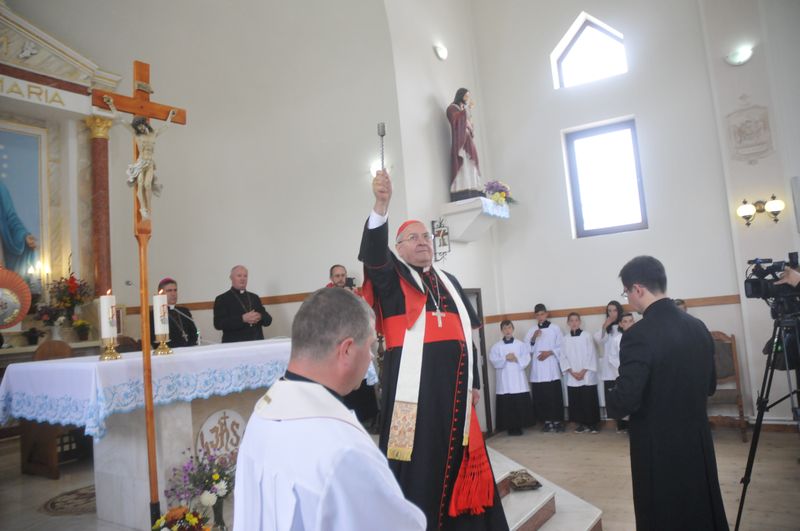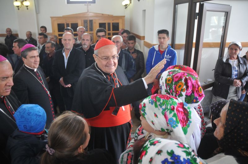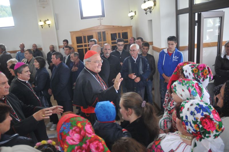 La intrarea în biserică Cardinalul Leonardo Sandri a binecuvântat şi a sfinţit lucrările executate, a felicitat şi lăudat întreaga comunitate pentru efortul şi dăruirea depuse în mulţumirea Domnului Isus Cristos.
