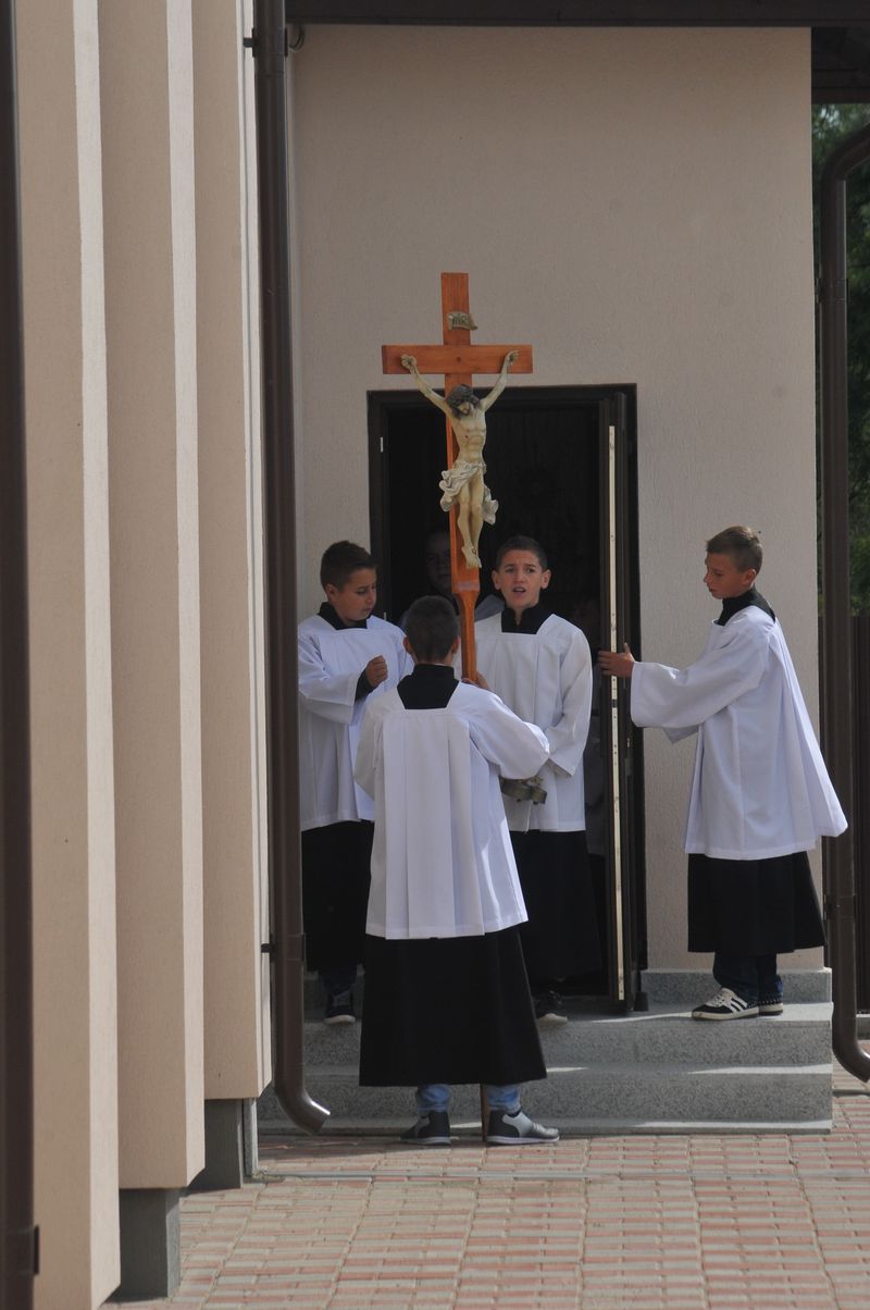 Ceremonia de sfinţire a fost îndeplinită, la rugămintea Excelenţei Sale Episcop Petru Gherghel, de Cardinalul Leonardo Sandri, după întreg ritualul unor astfel de manifestări: tăierea panglicii, înconjurul bisericii împreună cu naşii acesteia, binecuvântarea credincioşilor cu apă sfinţită.