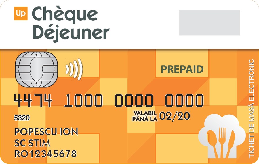 Up Romania, noua identitate a Chèque Déjeuner Romania, face parte din Grupul Up, o companie internationala si solida. Este prezenta in 17 tari si are o experienta de peste 50 de ani in domeniul furnizarii de produse si servicii pentru motivarea si fidelizarea angajatilor, recompensarea si stimularea vanzarilor, precum si instrumente pentru sustinerea programelor si proiectelor sociale.