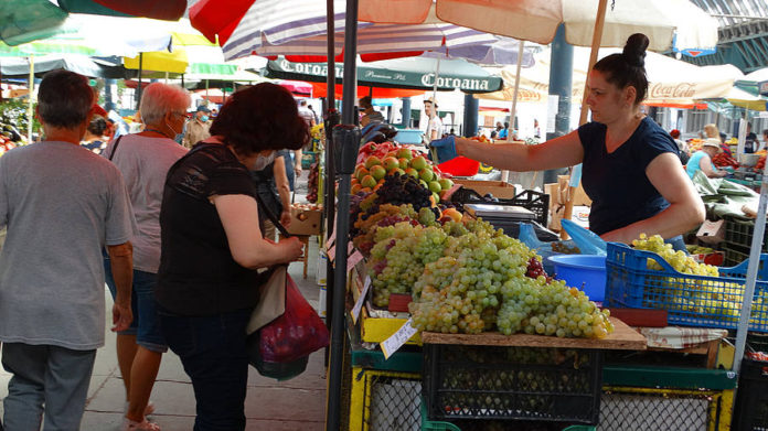 Nu puteam să ratez hala de lactate și zona aceea de magazine care era destul de aglomerată. Oamenii stăteau liniștiți la coadă, iar majoritatea dintre ei țineu cont de măsurile impuse prin portul măștii obligatoriu în spațiile închise sau aglomerate. Că nu le purtau regulamentar, asta este cu totul altceva… La lactate, cu toate că nu era multă marfă, mi s-a părut mai diversificată decât în Piața Centrală. Sau poate ajung eu prea târziu. Dar cele mai importante sunt prețurile: lapte dulce-6 lei bidounul de 2,5 litri, brânză proaspătă (scoaptă)-7 lei porția (cam 400-500 de grame), caș de oaie 25 de lei kilogramul, urdă 23, telemea de oaie de Itești 30 de lei iar brânza de burduf, tot de Itești, 23 de lei kilogramul. Ouăle de găină sau de prepeliță s-au terminat demult. Cu lista de produse finalizată mă pregătesc de finalizat ședința foto. Lumea se ferește în continuare. Doar un domn se așează frumos la poză și spune „eu am mască și sunt regulamentar”. Nu ne dă mai multe detalii și părăsește piața râzând. Cam același lucru mi-a rămas și mie de făcut. Lumea pestriță și zumzetul pieții rămân în urmă… Acum puteți să vă faceți calculele. Mergeți la cumpărături?