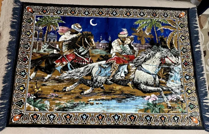 Un alt bacauan are de vânzare o Răpire din Serai adusă din Algeria, unde a fost realizată în 1985, pentru 1800 de euro iar un altul, din Berești Bistrița, cere 1400 de euro pentru o carpetă nouă.