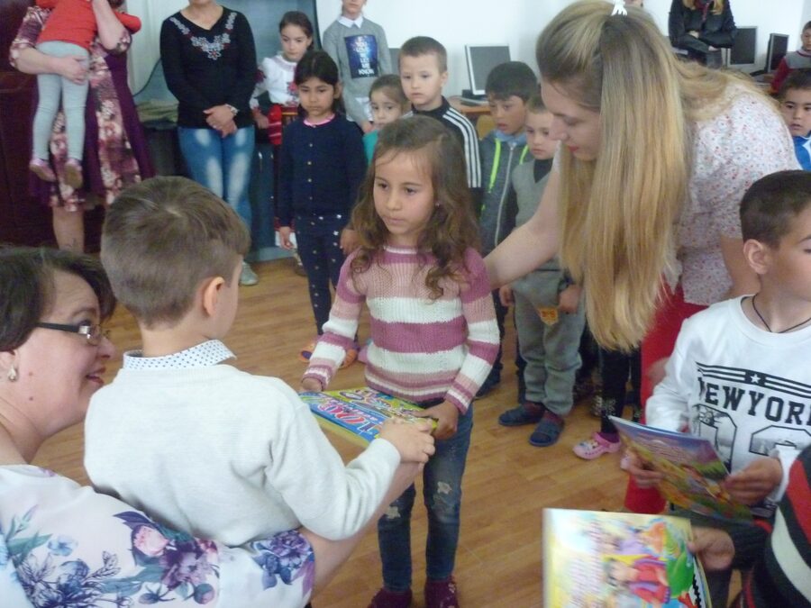 Grupa mijlocie B „Raza de soare” de la Școala Gimnazială „Octavian Voicu”, Bacău / Grădinița „Dumbrava minunată”, coordonată de educatoarele Lucica Baciu și Nicoleta-Luminița Gora, a donat cărți copiilor de la Școala Gimnazială Secuieni, într-o activitate de voluntariat, care a avut loc pe 16 aprilie.