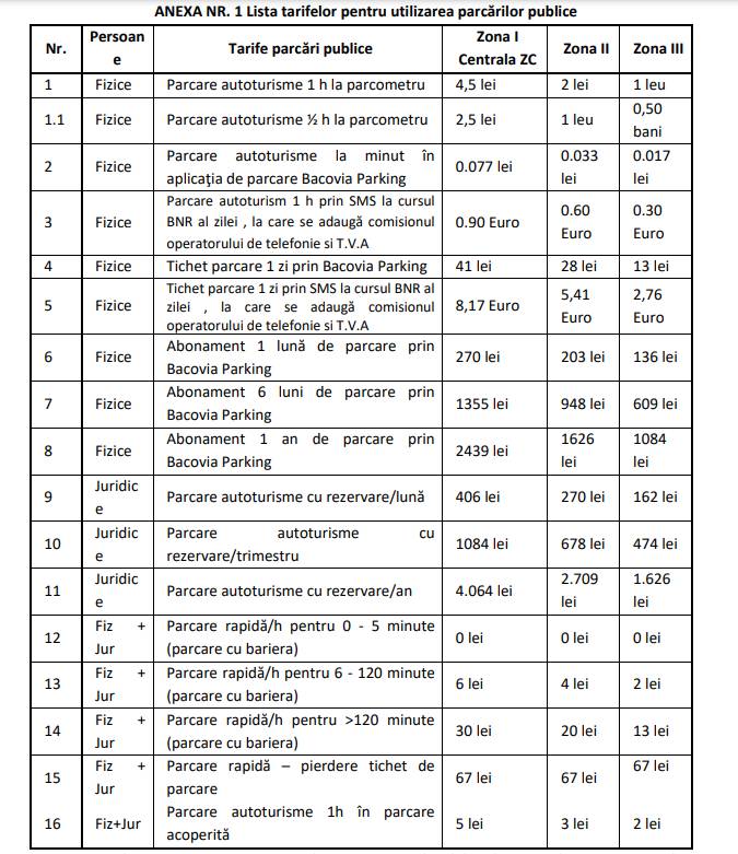 - Aplicația Bacovia Parking va percepe 0,077 lei/minut în Zona I.