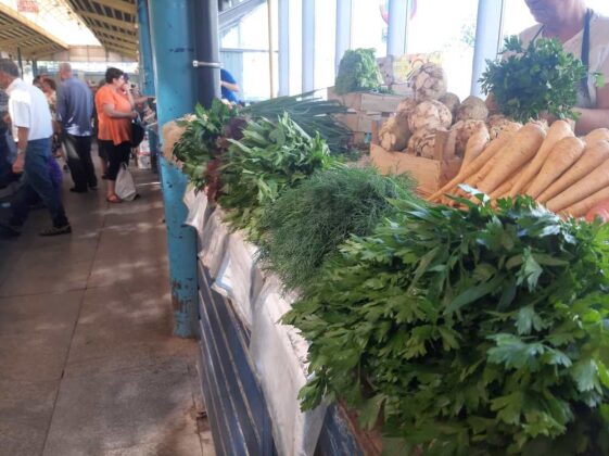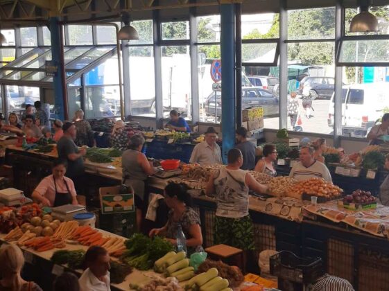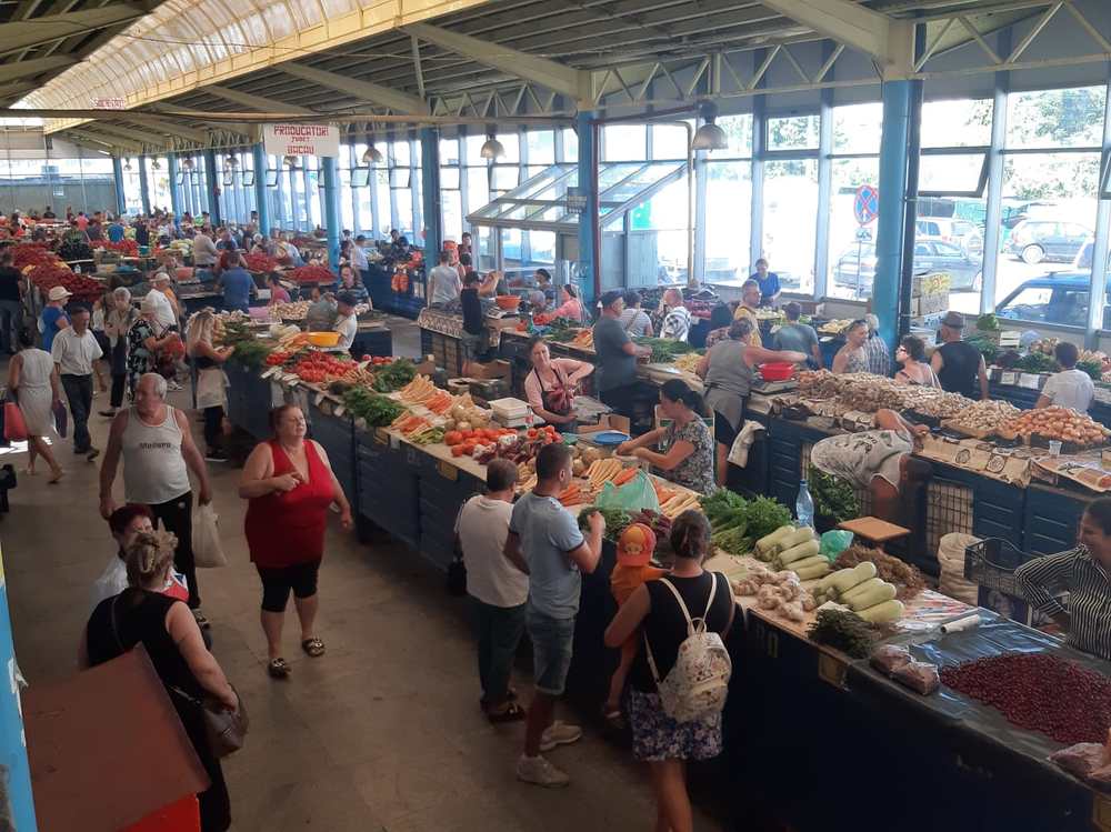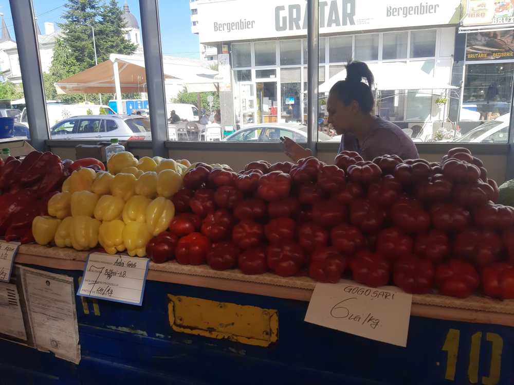 În hala mare din Piață, lumea e cam împărțită în două. Zona producătorilor și cea a samsarilor. Cel puțin așa susține Cătălina, o tânăra care vinde în zona de producători. De 9 ani se ocupă cu vânzarea în piață, perioadă în care a văzut și a învățat foarte multe, mai ales despre viață. „Noi, producătorii, avem marfă mai bună. Și mai ieftină. E adevărat că au crescut prețurile, dar e din cauza secetei”, spune Cătălina. Pentru ea, ziua începe la 6 dimineață când ajunge la piață și așază marfa pe tarabă. Și stă până după-amiază. Între timp oamenii vin, văd, unii cumpără, alții se minunează și pleacă. Oameni și oameni. Pe trabe sunt de toate. Greu de spus că vrei ceva și să nu găsești, deși se mai întâmplă epuizări de stoc. De exemplu, am căuat mure și s-au cam terminat. Dar e și mâine o zi. Așadar, legume, fructe, verdețuri… Proaspete, parfumate, numai bune. Prețuri? Nu vorbim azi de prețuri, dar nu sunt de speriat. Sigur, mulți povestesc despre faptul că vrei un kilogram de ceva ce costă, să zicem 8 lei iar omul de la tarabă te întreabă: să fie de 10? Puțin eronată tehnica asta, mai ales că pe majoritatea oamenilor nu-i dau banii afară din casă.