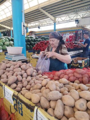 E adevărat că marfa din zona samsarilor pare mai frumoasă. Și tot acolo am văzut și pepenii de Dăbuleni, plus alte fructe și legume venite clar din import. Tot în zona asta am regăsit-o și pe tanti Anica, o mai veche cunoștință, care vinde cartofi aici în piață de mai bine de 25 de ani. „Vin tinerii ăștia din străinătate și mă întreabă dacă nu am cartofi de ăia mari, cum mănâncă ei pe acolo. Le-am zis că ăia sunt modificați. Cartofii n-au cum să crească așa. Și nici nu au gust. Ăștia sunt din pământul nostru românesc, aici sunt îngropați ai noștri, așa le-am spus. Și mi-au dat dreptate”, a povestit tanti Anica. Apoi și-a adus aminte cum era piața cu tarabe aiurea atunci când a venit prima oară în Bacău și că a fost martoră la toate schimbările. Și a mai trecut și prin pandemie și ne-a povestit râzând cum au dat geamurile jos de la piață iar în trei zile le-au pus la loc. „A fost o mare tâmpenie. Au vrut să ne stârpească pe noi, bătrânii și să-i nenorocească pe tineri. S-au îmbogățit unii. Ehh…”, a mai spus tanti Anica.