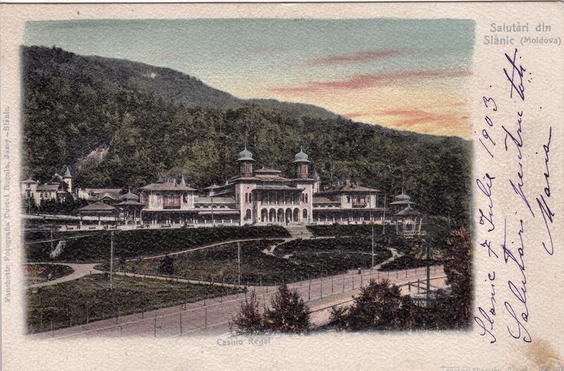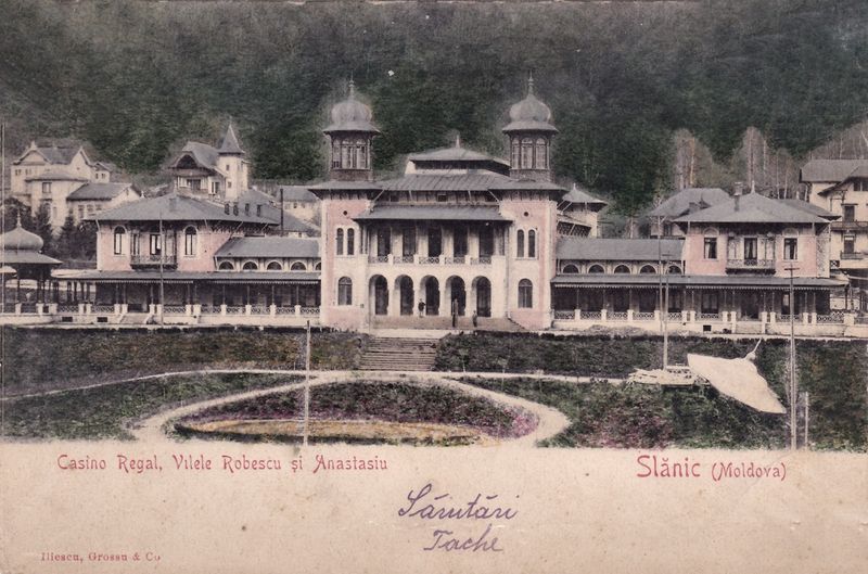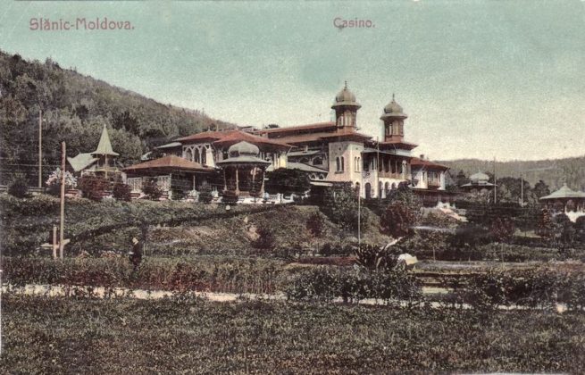 „Cazinoul e clădirea, în care pulsează mai mult viaţa staţiunii de dimineaţă şi până noaptea târziu, acesta fiind unul dintre locurile de distracţie ale vizitatorilor. Aici, pe lângă restaurantul cel mai bun şi mai mare ce-l are Slănicul, Cazinoul are şi o frumoasă sală de cinematograf în care e şi un piano, are sală în care se dau concerte, serate, festivaluri, sală de bibliotecă pentru lectură, cofetărie. Tot la Cazinou, sunt săli unde se joacă cărţi şi unde sunt instalate mesele pentru jocurile de noroc: şah, table, biliard, blackjack, baccarat, ruletă şi unde foarte multă lume venită în staţiune, petrece ore întregi, unii încercându-şi norocul, alţii privind numai de curiozitate”, scria Cleopatra Tăutu, în prima monografie a stațiunii realizată între 1930-1934.