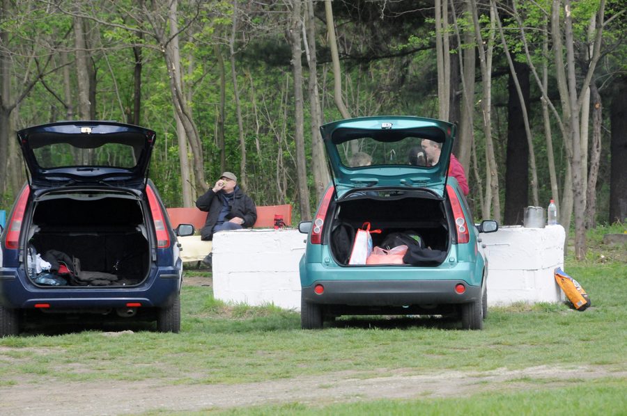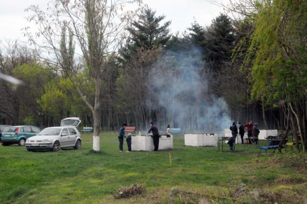 E drept că vremea nu a ținut cu iubitorii grătarului la iarbă verde. Doar câțiva nostalgici s-au plimbat duminică după-amiază prin păduricea de la Gherăiești. Leagănele din locurile de joacă și băncile, colorate alternativ în ideea de tricolor, așteptau soarele. Se burzuluia totuși un vânticel, aducând miros de fum și carne rumenită. Numărai pe degetele de la o mână bucătarii de ocazie. Locurile, specializat amenajate cu grătare, mai așteptau clienți.