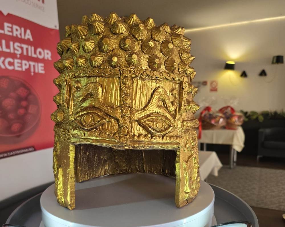 Printre atracțiile principale ale Festivalului Chocolate Saga din Iași se află o replică a celebrului Coif de la Coțofenești, realizată integral din ciocolată și foiță de aur de artista Dalia Maria Păduraru.