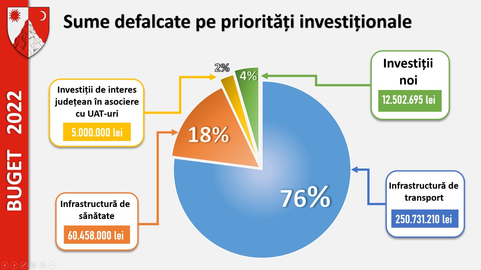 Bugetul alocat județului în acest an vizează, în principal, continuarea lucrărilor la proiectele deja începute, precum şi demararea unor noi investiţii pentru dezvoltarea economică şi socială a judeţului.