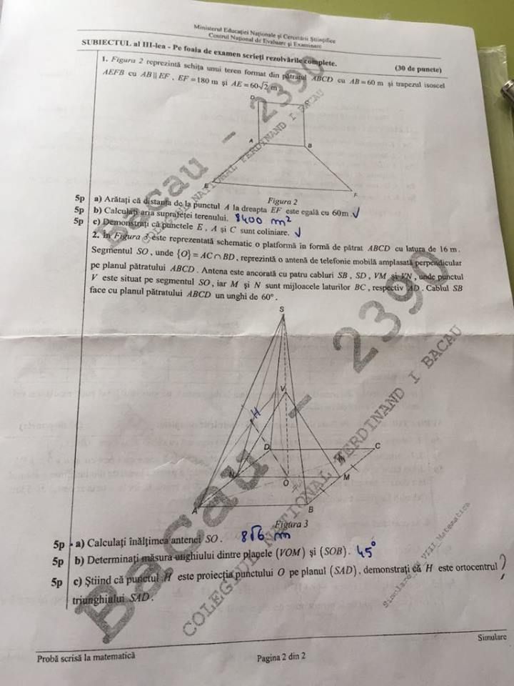 Subiectele de azi de la simularea evaluarii nationale, proba de matematica.