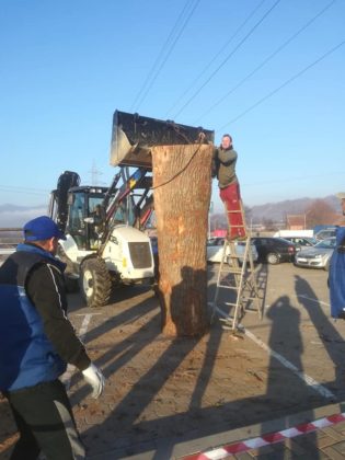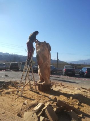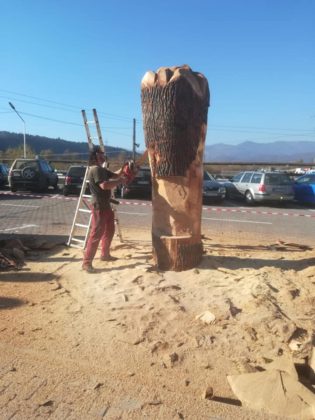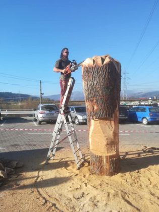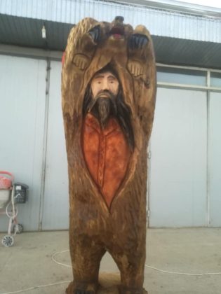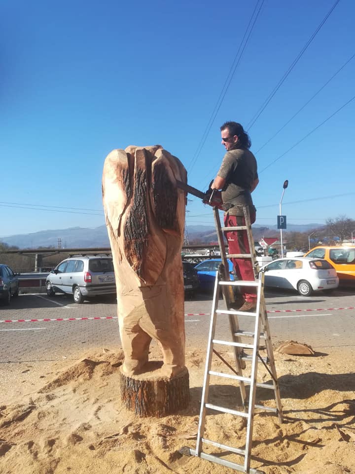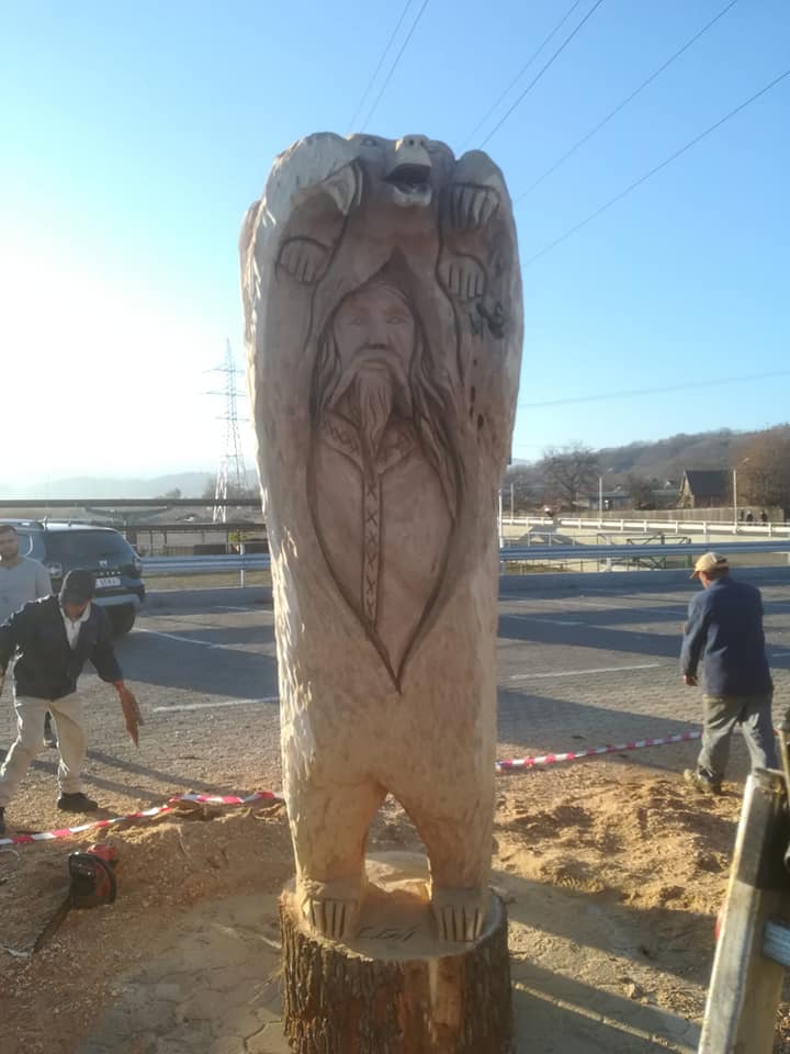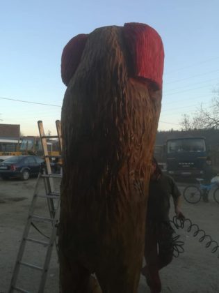 Astăzi, la Dărmănești, sculptorul Gabriel Cernat a modelat, timp de opt ore, un trunchi de stejar și l-a transformat într-o statuie ce înfățișează un ursar.