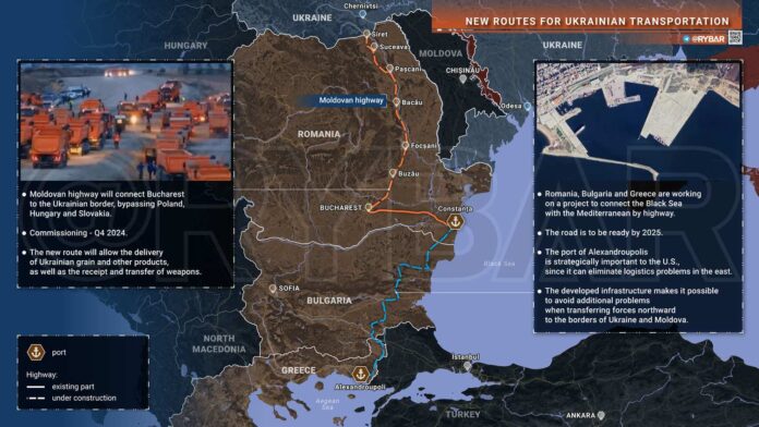 Unul dintre cele mai active conturi Telegram dedicate conflictului din Ucraina, Rîbar, scrie despre ambițiosul proiect de construcție al Autostrăzii Moldovei, care leagă granița cu Ucraina de portul Constanța, într-un efort de a ocoli Polonia, Ungaria și Slovacia.