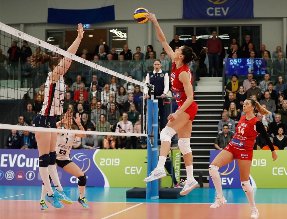 Echipa antrenată de Florin Grapă a obținut o splendidă calificare în „sferturile” Cupei CEV, unde va întâlni, mai mult ca sigur, formația cehă VK UP Olomouc. În „optimi”, studentele au trecut de campioana Olandei, Sliedrecht Sport cu un dublu succes: 3-2 acasă și 3-0 (20, 21, 22) în returul disputat marți seara, în deplasare.