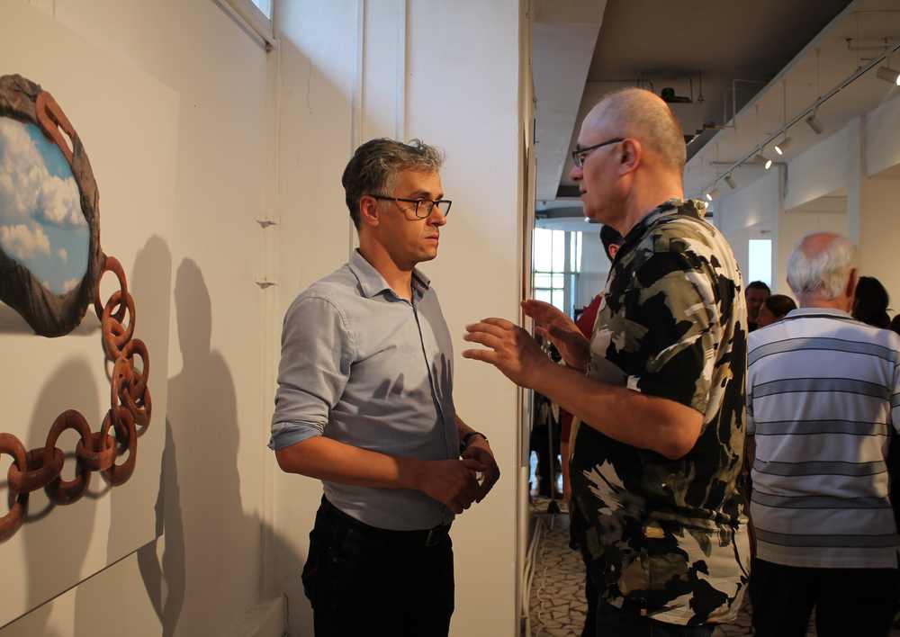 În primele secunde, de când am intrat în interiorul Galeriilor Alfa, am fost întâmpinată de o atmosferă deschisă, de parcă pășisem direct în abstract. Prezența domnului VEM la costum, plimbându-se prin mulțime, cu un măr nelipsit din mâna sa, părând el însuși un personaj dintr-o lucrare de Magritte, a făcut experiența cu atât mai memorabilă. Tablourile care mi-au captat atenția (și care vor rămâne anonime, în speranța de a vă convinge să le vedeți chiar voi) păreau să fie opuse, unele reprezentând haos, altele, echilibru, unele, libertate, altele, captivitate… Numitorul lor comun a fost, totuși, impecabilitatea detaliilor și a compoziției.