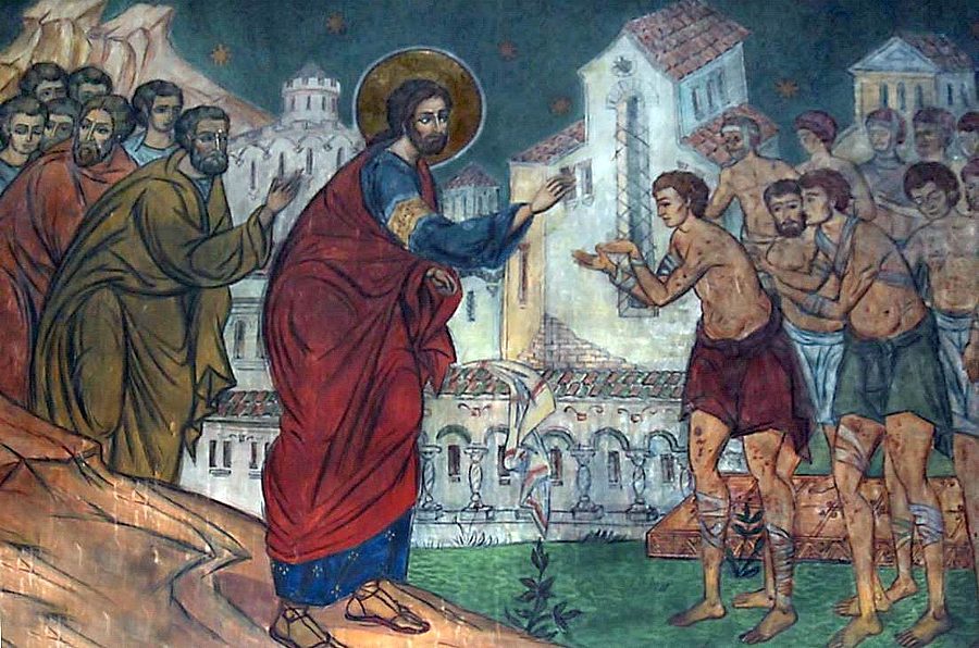 Boala de care sufereau aceşti zece oameni era cumplită nu numai datorită faptului că era o boală incurabilă, care conducea la descompunerea lentă a mădularelor afectate, ci şi datorită faptului că era o boală contagioasă, care implica excluderea din familie, din locuinţă, din societate şi din tot ce însemna viaţă publică, a celui afectat. Dar într-o zi s-a întâmplat ceva cu totul nebănuit şi neaşteptat, care a rupt şirul evenimentelor plictisitoare şi dureroase, ale vieţii de ghetou, a celor zece leproşi: Prin zonă a trecut un rabin al lui Israel, despre care circula zvonul, că a vindecat mulţi oameni şi suferinzi de bolile cele mai cumplite. Leproşii, făcând şi ei parte din categoria oamenilor nenorociţi care se agaţă cu disperare de orice speranţă, au început să strige după ajutor. Domnul Iisus, care niciodată n-a rămas insensibil la astfel de strigăte, i-a vindecat. Însă interesant este modul în care a făcut lucrul acesta: i-a trimis să se arate preoţilor. Conform prescripţiilor Vechiului Testament, preoţii erau cei care constatau prezenţa bolii, evoluţia sau vindecarea ei, şi tot preoţii decideau dacă cel afectat, putea să reintre în societate sau să rămână mai departe în izolare. Minunea a constat în faptul că în drum spre preoţi, dintr-o dată, cu toţii, s-au văzut curăţiţi. Boala, adesea, îi uneşte pe oameni, şi face să dispară prejudecăţile şi barierile dintre ei. Ca leproşi, au convieţuit bine şi evreii şi samaritenii. Însă când s-au văzut vindecaţi n-au mai putut sta împreună. Numai unul şi-a adus aminte de condiţia sa de demult…