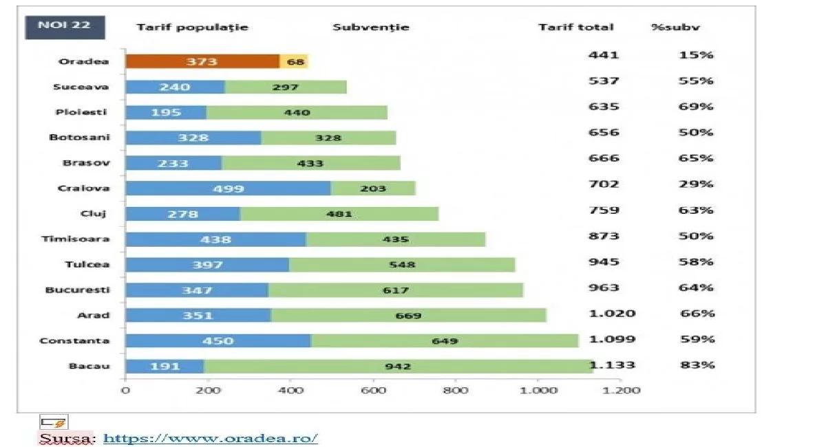 Oradea lei/Gcal, cu TVA inclus nesubventionat