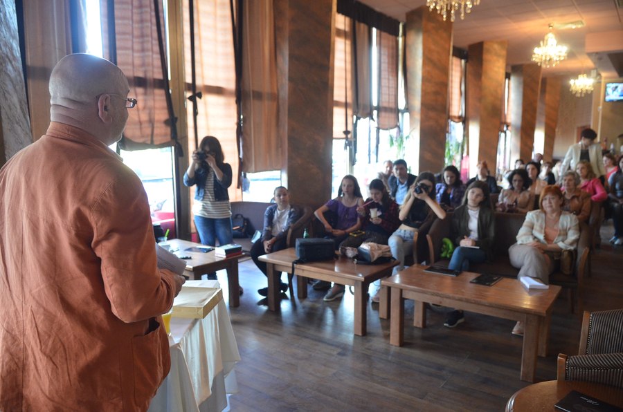 Finalul întâlnirii cu publicul băcăuan a fost marcat de o la fel de delicioasă ”polemică” pe marginea Poeziei precum și de lectura propriului poem apărut în ultimul număr al revistei de cultură Vitraliu (periodic al Centrului Cultural Internațional ”George Apostu” din Bacău).