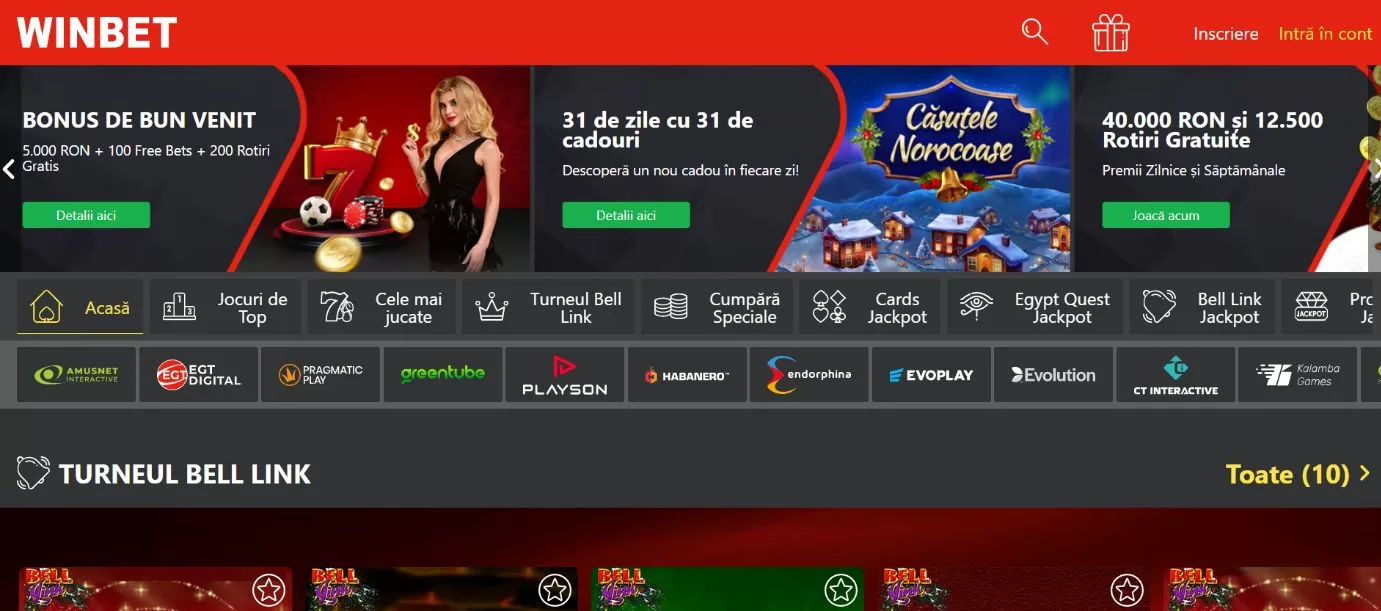 Winbet Casino are cele mai multe jocuri 7777, cele mai multe oferte la jocurile cu Jackpot progresiv, rată de plată excelentă la sloturi, un bonus Happy Hour în rotiri gratuite la cele mai cunoscute jocuri de păcănele. Winbet nu este cunoscut doar pentru secțiunea de sloturi ci și pentru ofertele la Pariuri Sportive și mesele de pariuri live. Și bonusul este formulat în așa fel încât să motiveze orice jucător.